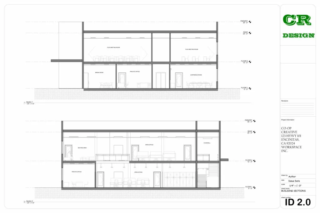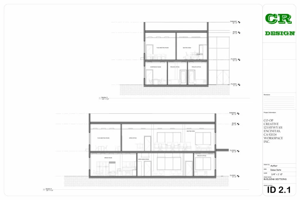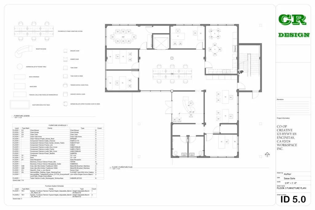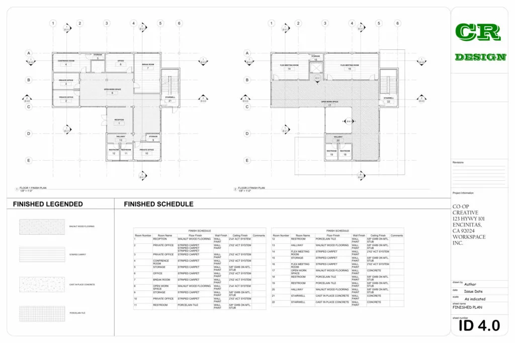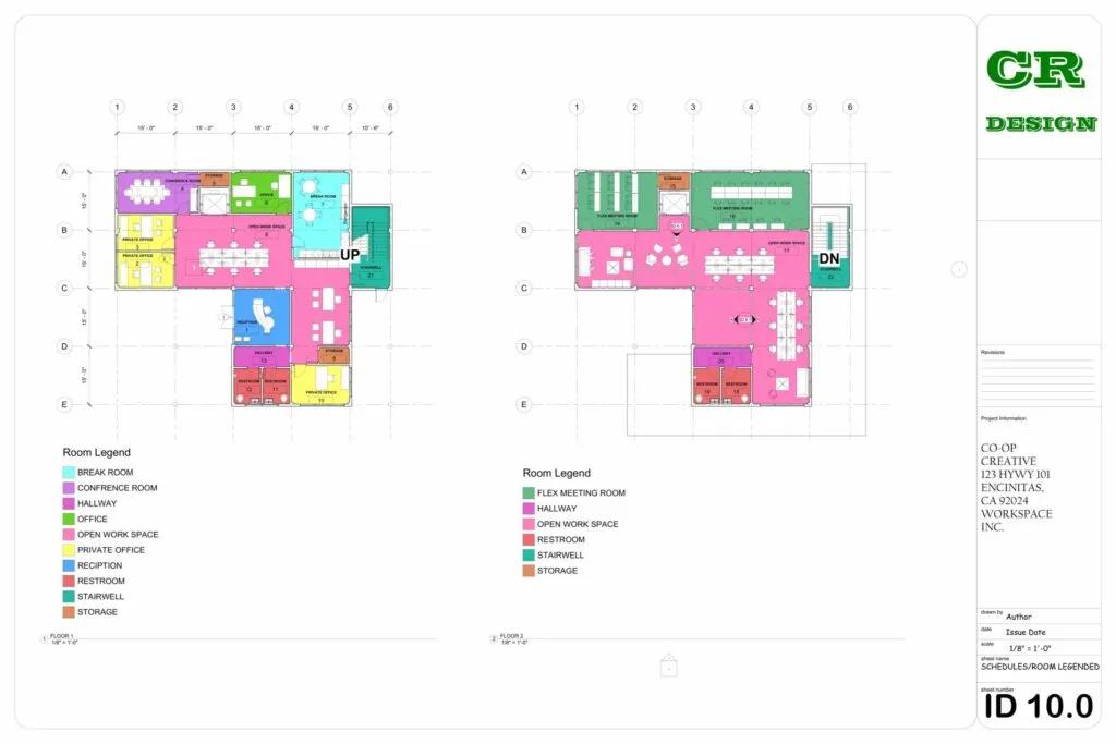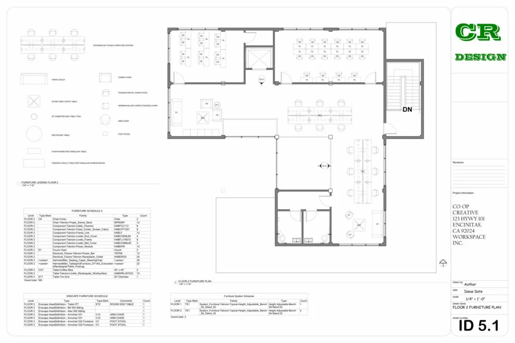 This commercial interior design project presents a contemporary workspace tailored for Co-Op Creative, located at 123 HWY 101, Encinitas, CA. The design emphasizes functionality, collaboration, and modern aesthetics through an open-plan layout, clean lines, and the strategic use of natural light.